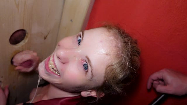Брюнетка с блондинкой стали соревноваться, кто же больше получит спермы. Члены из дырок в стене торчали, а девки их активно сосали.
